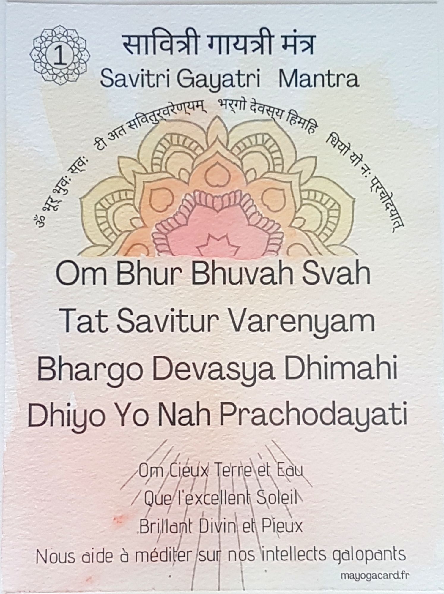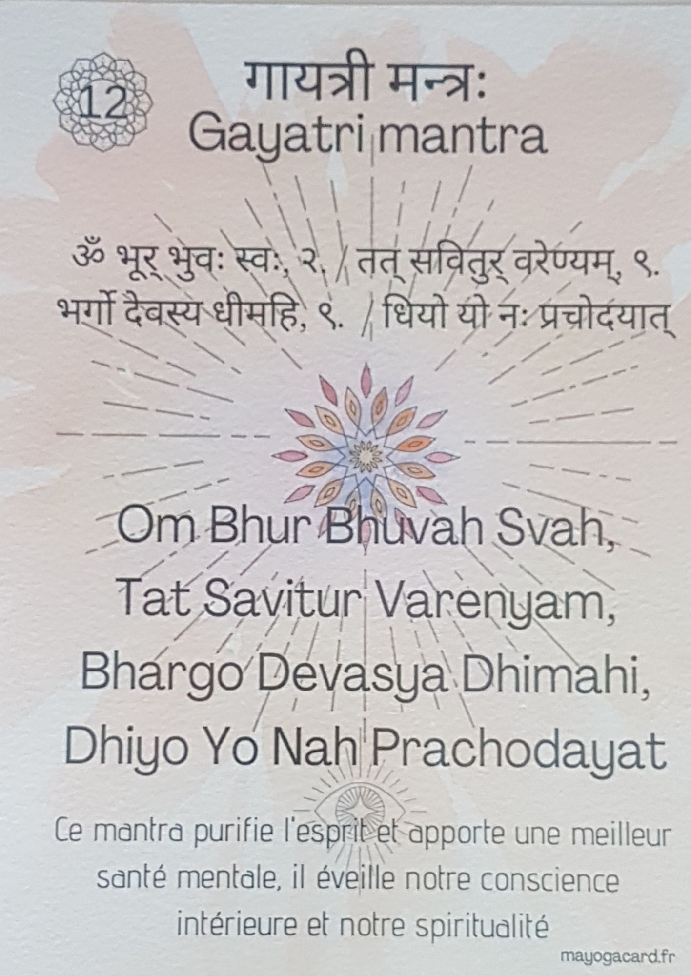 12 - Gayatri mantra : "Om Bhur Bhuvah Svah, Tat Savitur Varenyam, Bhargo Devasya Dhimahi, Dhiyo Yo Nah Prachodayat"