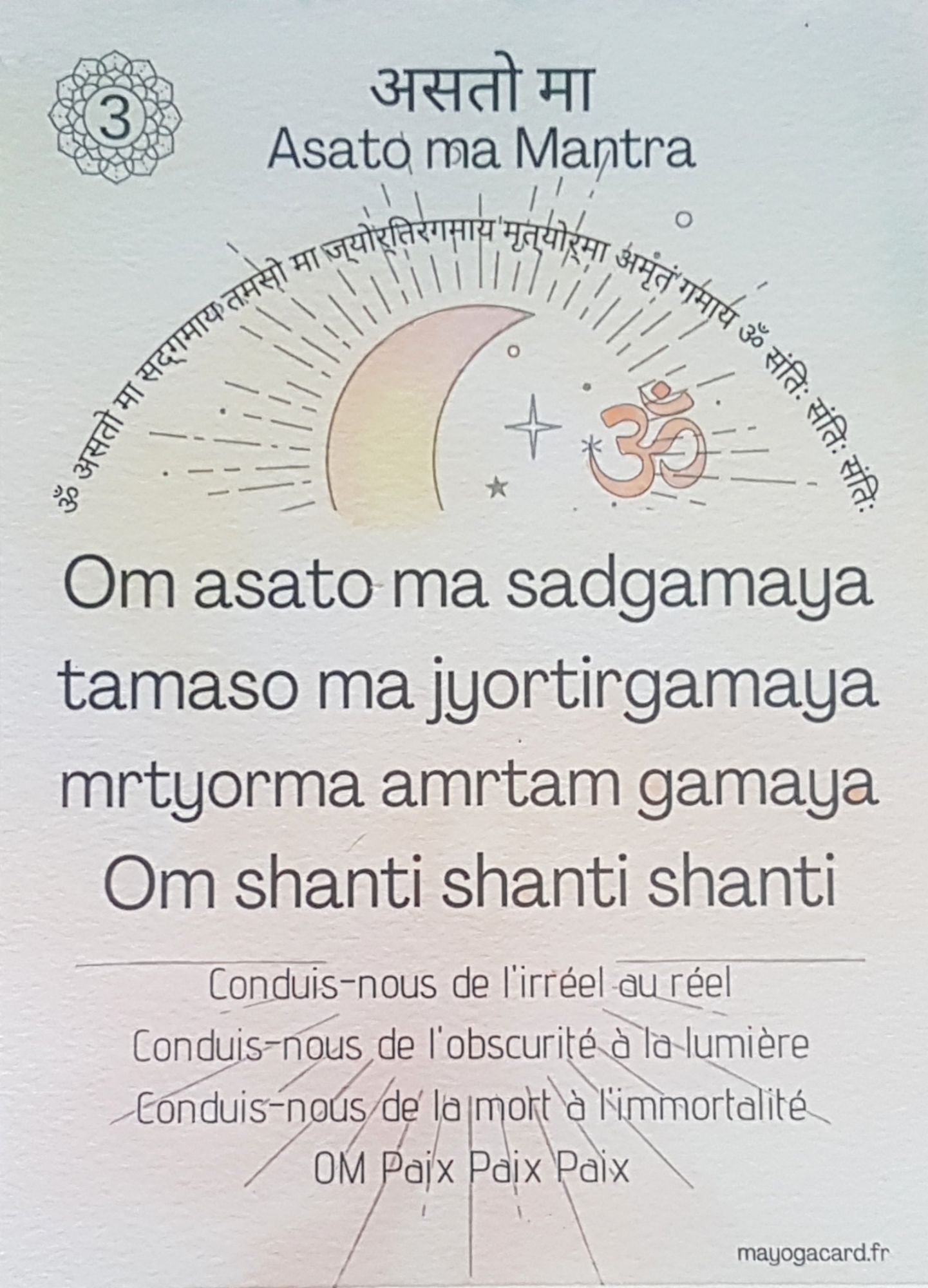 3 - Om asato ma sadgamaya, tamaso ma jyortirgamaya, mrtyorma amrtam gamaya , Om shanti shanti shanti
