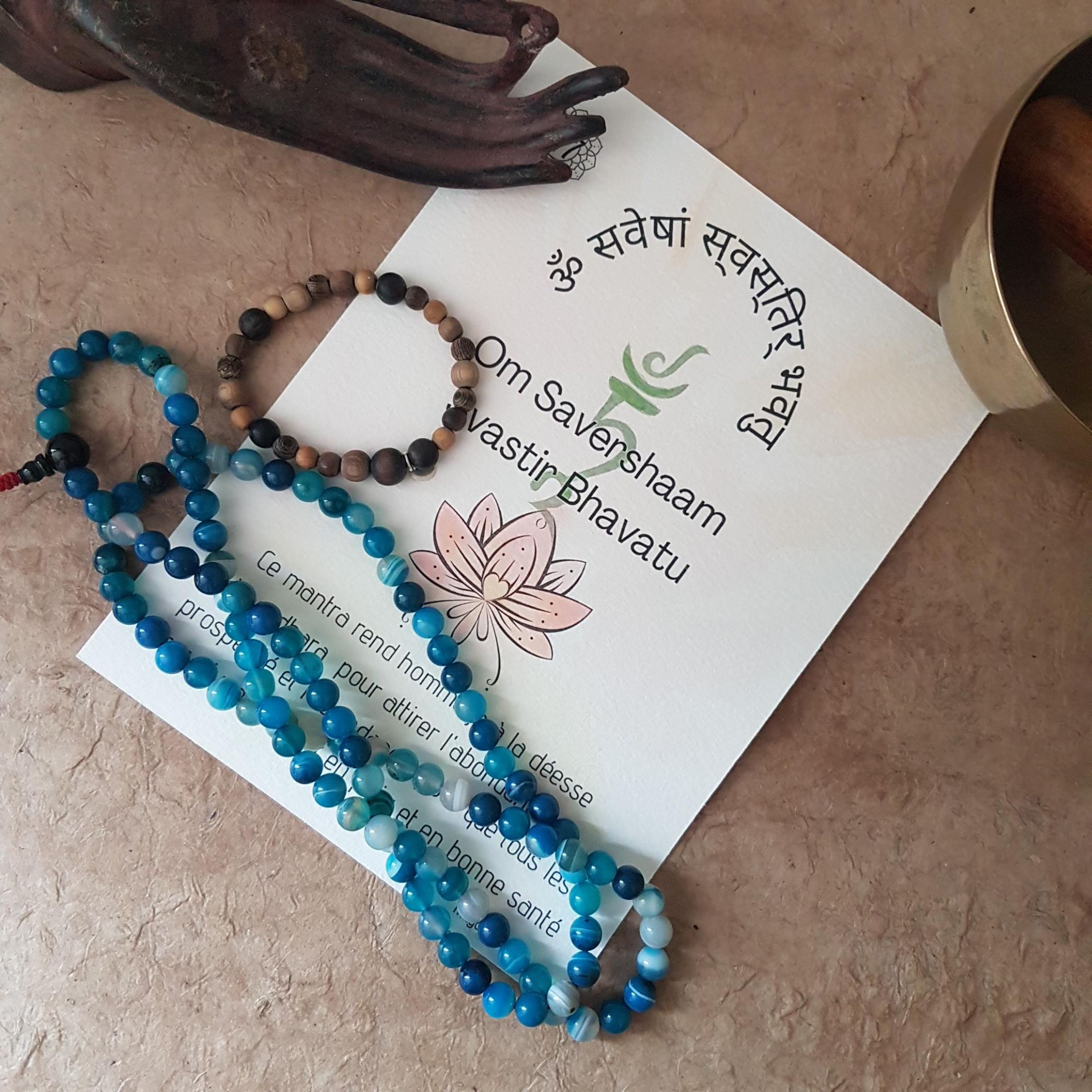 Tenez une perle de votre bracelet Mâlâ entre vos doigts et à chaque fois que vous récitez votre mantra vous déplacez vos doigts sur la perle suivante. Cela vous aidera à compter les répétions tout en restant présent. Si vous utilisez un bracelet à la dernière perle vous repartez en arrière.